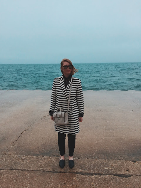 This coat is so old, but I wear it so little that people think it's new. It was my 20th birthday present to myself, an obvious knock-off of one of Marc Jacob's last collections for Louis Vuitton. But since stripes never go out of style, neither does this coat. It doesn't need more than jeans and some loafers. I tend to let statement pieces shine by toning down the rest of the outfit, and this look is no exception. Can we also take a moment to appreciate the clarity of the iPhone6 camera? It's become a new (albeit annoying) habit of mine to always ask people with 6's to take my picture, but I just love the quality of the photos. People probably think I'm vain for always wanting my photo taken, but let me take a second to explain myself. For starters, I don't think I'll ever look back on my life and wish I'd taken less photos. I also have sunglasses on in all of my photos, which should imply that I want my outfit or my backdrop to be the focal point of the image - not my face. That's my explanation for why I'm so apart of generation image. That and the fact that I love a cool photo. More to come!